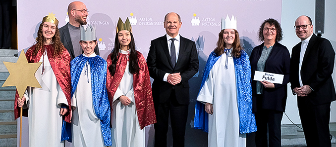 Bundeskanzler Olaf Scholz hat am Donnerstag in Berlin 108 Sternsinger aus allen 27 deutschen Bistümern empfangen. Das Bistum Fulda war mit einer ökumenischen Sternsinger-Gruppe aus der Pfarrgemeinde Christkönig in Schöneck im Main-Kinzig-Kreis vertreten. Im Bistum Fulda selbst fand die große Aussendungsfeier für die Sternsinger mit Bischof Gerber bereits am Dienstag statt. Ein Video zeigt nun Eindrücke dieses besonderen Tages.
