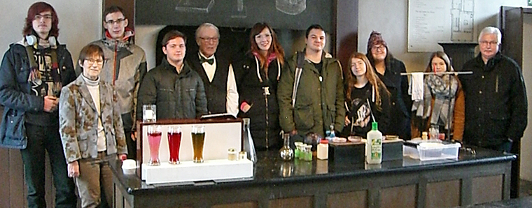 Die angehenden CTA mit ihren Lehrkräften Rita Feick (2. v.l.) und Dr. Michael Fischer (rechts im Bild) sowie Eberhard Theophil (5. v.l.) im alten Hörsaal. Foto: Dr. Michael Fischer