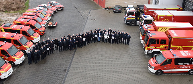 Als Anerkennung dieser Leistung für den Brand- und Katastrophenschutz überbrachte Landrat Thorsten Stolz Zuschüsse des Main-Kinzig-Kreises in Höhe von 54.500 Euro. „Es geht heute nicht darum, Geschenke zu verteilen“, machte der Landrat deutlich und ergänzte: „Diese Fahrzeug-Anschaffungen sind ebenso sinnvoll wie notwendig. Es geht darum, für den Ernstfall gut ausgerüstet zu sein.“ Denn im schlimmsten Fall stünden Menschenleben auf dem Spiel. Eine gute Ausrüstung diene auch dem Schutz der ehrenamtlichen Kräfte, die bei jedem Einsatz bereit seien, ihr eigenes Leben zu riskieren. „Dafür verdienen diese Feuerwehrmänner und -frauen große Anerkennung und Respekt. Sie setzen sich im Main-Kinzig-Kreis bei rund 6000 Einsätzen im Jahr für die Sicherheit der Allgemeinheit ein“, bilanzierte Thorsten Stolz. Er lobte auch die Städte und Gemeinden als verlässliche Partner der ehrenamtlichen Feuerwehren. „Die Investitionen fließen eins zu eins in die Sicherheit der Bürgerinnen und Bürger“, stellte der Landrat fest. Auch Kreisbrandinspektor Markus Busanni lobte die Fahrzeuganschaffungen. Insbesondere die Mannschaftstransportfahrzeuge würden auch in der Jugendarbeit zum Einsatz kommen. „Die Nachwuchsförderung genießt bei den Feuerwehrvereinen einen großen Stellenwert“, sagte er. Umso erfreulicher sei es, dass besonders in den Kinderfeuerwehren ein deutlicher Zuwachs zu beobachten sei. Das seien in einigen Jahren vielleicht einmal die Feuerwehrleute von morgen.