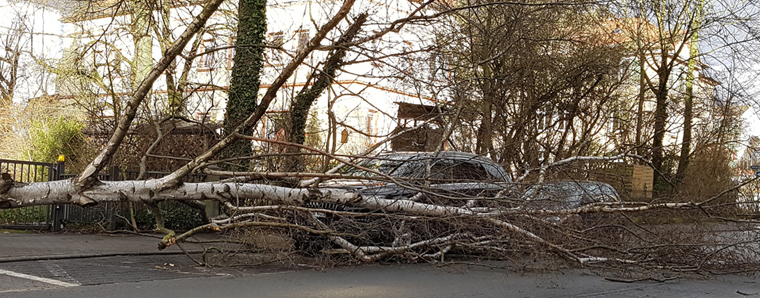 Das Sturmtief Bennet ist über Osthessen und Hessen geweht: Die heftigen Winde sorgten in den Gemeinden und Städten überwiegend für Sachschäden. In Hessen kam es zu zahlreichen Einsätzen für Polizei und Feuerwehr wegen umgestürzter Bäume, Schilder und umherfliegende Mülltonnen.
