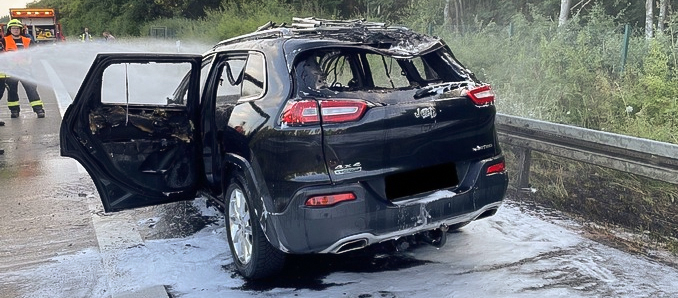 Der Fahrer reagierte umgehend, steuerte sein Gespann auf den Standstreifen und öffnete die Motorhaube. Dabei schlugen ihm bereits Flammen entgegen. Geistesgegenwärtig koppelte er den Wohnwagen ab, bevor der Pkw vollständig in Brand geriet und schließlich ausbrannte. Das Fahrzeug wurde durch das Feuer vollständig zerstört.