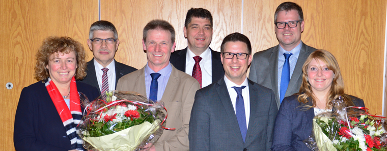 Bürgermeisterin Claudia Blum, Landrat Manfred Görig, Ersatzkandidat Uwe Habermehl, der Gießener SPD-Vorsitzende Matthias Körner, SPD-Landtagskandidat Swen Bastian, Matthias Weitzel und Christina Blank, die Verlobte von Swen Bastian. (v.l.)
