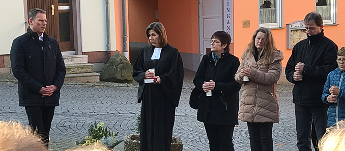 Im Rahmen der Kranzniederlegung auf dem Platz der ehemaligen Synagoge im Anschluss an den Gottesdienst betonte Bürgermeister Dänner mit bewegenden Worten die große Verantwortung der heutigen Politik und jedes einzelnen Bürgers, die bitteren Geschehnisse nicht in Vergessenheit geraten zu lassen. Man müsse sich auch vor Augen führen, dass diese Ereignisse nicht in weiter Ferne stattfanden, sondern mitten in dem kleinen Städtchen Tann, mitten unter Tanner Freunden, Nachbarn und Geschäftspartnern. Man dürfe nicht zulassen, dass sich solche Ereignisse wiederholen. Die aktuelle Generation muss dringend ihren Kindern diese Botschaft mit auf den Weg geben. +++