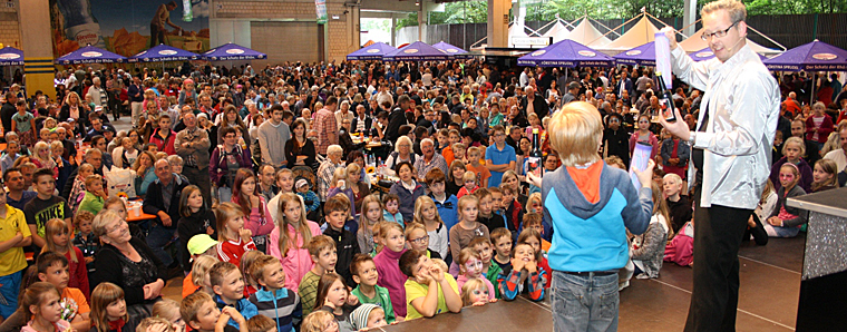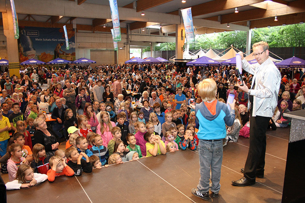 Bereits ab halb elf drängte es die Massen nach Lütter, um elf Uhr begann dann das gewohnt umfangreiche Rahmenprogramm: Auf der großen Bühne des Förstina Show-Trucks führten unter anderem wieder die deutschen Vize-Meister 2013, die „Eichezeller Schreckschruwe“, sowie die Hessenmeister 2013, die Löschenröder Schoppengarde ihre Showtänze auf. Zauberei und Illusion mit Gerrit, Comedy und Jonglage mit „Drunter & Drüber“ sowie eine beeindruckende Großtrampolin-Show mit Workshop zum Mitmachen versprachen einen kurzweiligen Besuch auf dem Brunnenfest von Förstina. Die Schüler der Rhönschule Gersfeld faszinierten mit „Lego Education“ – mit den kleinen bunten Techniksteinen bauen sie eine Förstina-Produktionsanlage nach. Die Ahornschule Lütter sprühte Airbrush-Tattoos und stellte im Kinder-Quiz knifflige Fragen, die mehrere hundert Kinder beantworteten – als Gewinne winkten Eintrittskarten und Kinderpartys im Takka-Tukka-Land. Daneben gab es Vorführungen der Rettungshundestaffel Hessen Ost e.V. und des spektakulären Kampfsports Aikido. Ortsvorsteher Alfred Schleicher und die „Brunnenfee“ Ulricke Rummel präsentierten unter der Moderation von Förstina-Marketingleiter Peter Seufert das Programm für die Jubiläumsfeierlichkeiten zum 1200-jährigen Bestehen von Lütter im Jahr 2015 – die größtenteils in der Förstina-Halle stattfinden werden. Daher wird das Förstina-Brunnenfest im kommenden Jahr nicht stattfinden.