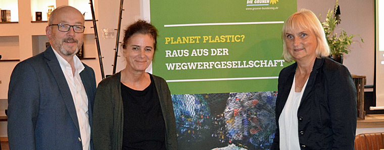„Was ist möglich, was kann auf lokalpolitischer, was kann auf individueller Ebene gegen die Plastikflut getan werden?, so eröffneten die Direktkandidierenden von Bündnis 90 / Die Grünen, Silvia Brünnel und Markus Hofmann, die Informationsveranstaltung zu dem Thema „Planet Plastic – Raus aus der Wegwerfgesellschaft“. Die Zahlen sind alarmierend wie Dr. Bettina Hoffmann, MdB und Grüne Sprecherin für Umweltpolitik und -gesundheit in Berlin, betonte. Um nur ein Beispiel zu nennen: Allein in den Meeren schwimmen 150 Millionen Tonnen Plastik.