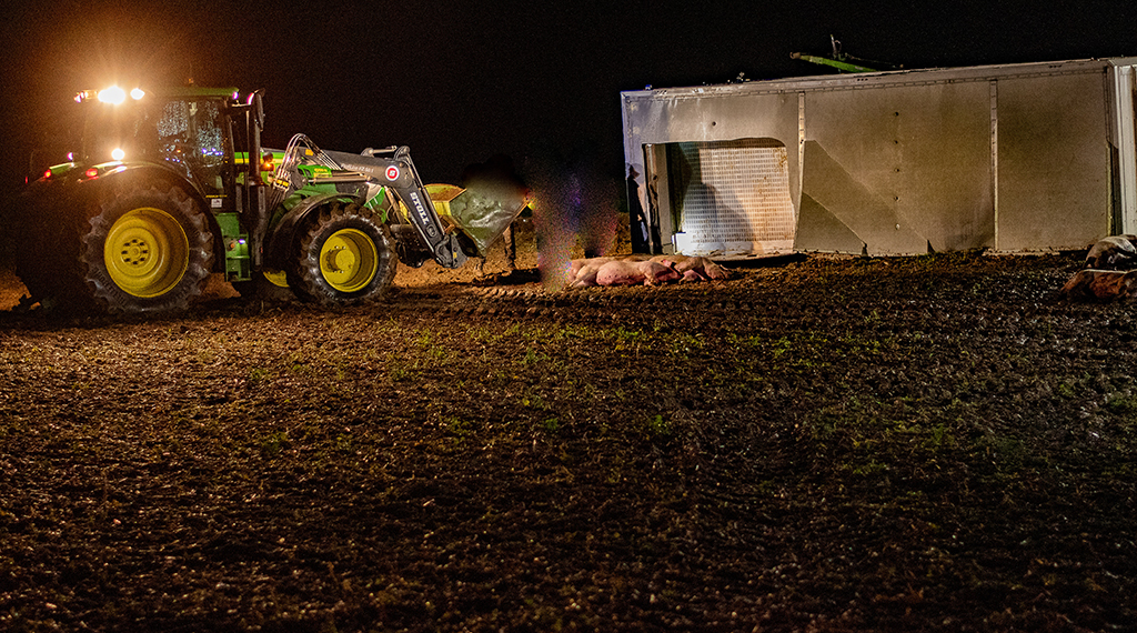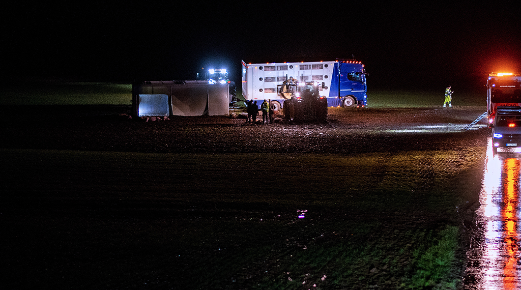 Der verunfallte Lkw einer Spedition aus dem Vogelsbergkreis hatte dort zuvor insgesamt 168 Schweine geladen. Auf der Zufahrt zur nächstgelegenen Straße geriet der Anhänger aus bislang ungeklärter Ursache auf die aufgeweichte Bankette. Das schwere Fahrzeug verlor die Stabilität – der Anhänger kippte um. Für 13 Tiere kam jede Hilfe zu spät, sie verendeten noch an der Unfallstelle. Der Fahrer des Lastwagens hingegen hatte Glück im Unglück und blieb unverletzt.