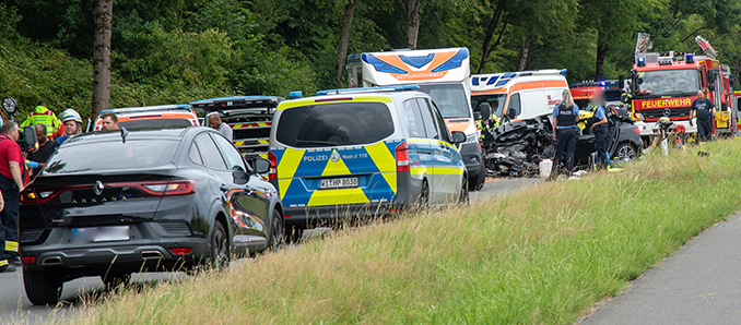 Bei einem schweren Verkehrsunfall auf der Landesstraße 3325 zwischen den Ortsteilen Merlau und Nieder-Ohmen in der Gemeinde Mücke ist am Sonntagnachmittag (20. Juli) ein 64 Jahre alter Mann ums Leben gekommen. Sechs weitere Personen, darunter drei Kleinkinder, erlitten teils schwere Verletzungen.