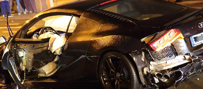 Fulda. Auf der Petersberger Straße kam es bei einem illegalen Autorennen gegen 22.30 Uhr zu einem schweren Verkehrsunfall. Auf der vierspurigen Straße, jede Fahrtrichtung zwei Fahrstreifen, fuhren stadtauswärts nebeneinander ein Audi R8 und ein Mercedes AMG. In Höhe der Dientzenhoferstraße kam es zu einer seitlichen Berührung zwischen den beiden Autos. Hierdurch geriet, der 32-jährige Fahrer des Pkw ins Schleudern. Sein Auto rutschte über den Gehweg und prallte dort gegen eine Betontreppe eines Hauses. Dabei wurde der Pkw auf die Fahrbahn zurück geschleudert.