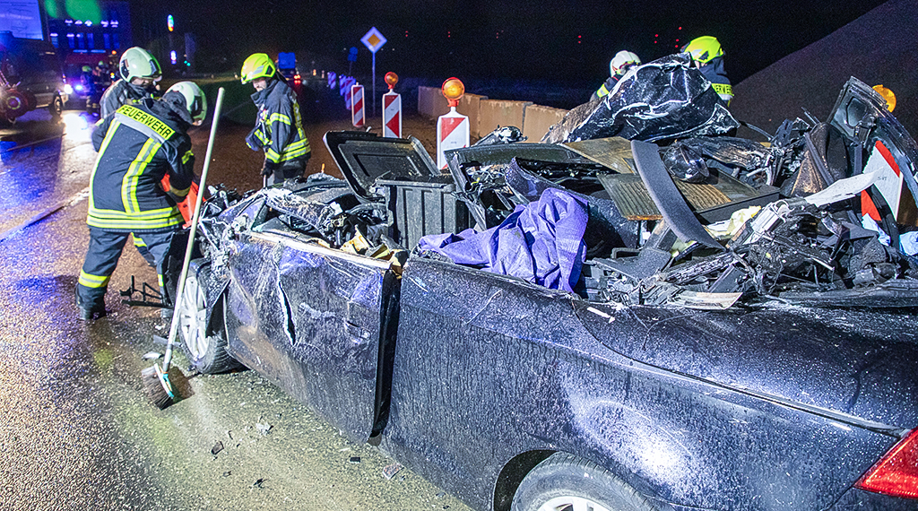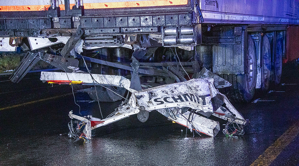 Zu einem tragischen Verkehrsunfall kam es kurz nach Mitternacht auf der B454 Neustadt Richtung Stadtallendorf. Beim Eintreffen der ersten Rettungskräften bot sich diesen ein schreckliches Bild. Ein VW Cabrio ist in Höhe des Autohofes unter einem Lkw gekracht, dabei wurde der Fahrer eingeklemmt. Der eingetroffene Notarzt konnte nur noch den Tod des 29-Jährigen feststellen. Beide Fahrzeuge kamen aus Richtung Neustadt. Der Lkw-Fahrer wollte nach links auf den Autohof abbiegen. Der nachfolgende Pkw übersah den Lkw und krachte unter den Sattelauflieger. Bei dem Pkw-Fahrer handelt es sich um ein 29-Jährigen aus dem Raum Kirchhain. Der 37-jährige polnische Lkw-Fahrer blieb bei dem Unfall unverletzt, sein Lkw ist nach dem Unfall nicht mehr fahrbereit und muss abgeschleppt werden. Eine sehr belastende Situation für die Einsatzkräfte, berichtete der Pressesprecher der Feuerwehr Stadtallendorf, Dirk Mann: „Wir werden im Anschluss noch mal alles aufarbeiten, um das Geschehene zu verarbeiten.“ Auch ein Gutachter war ein der Einsatzstelle, um Spuren zu sichern. Die Strecke wird wegen der Bergung und Reinigungsarbeiten noch bis in die frühen Morgenstunden gesperrt sein. Vorort waren 25 Einsatzkräfte der Feuerwehr Stadtallendorf sowie der Rettungsdienst und die Polizei. +++