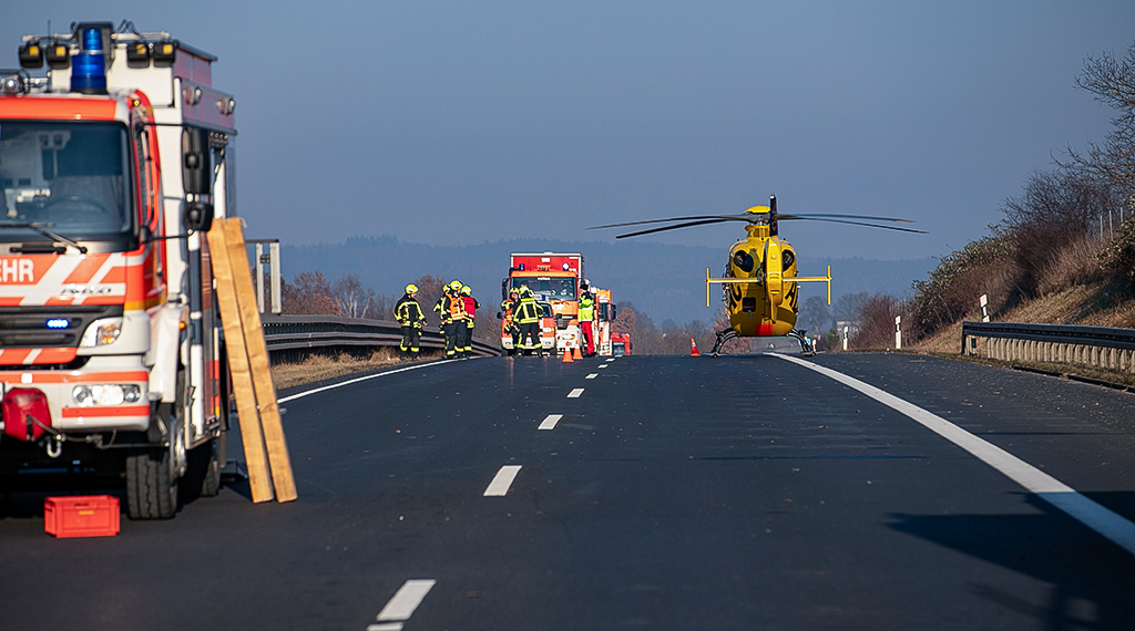 Tödlicher Verkehrsunfall auf der A66 in Höhe Flieden