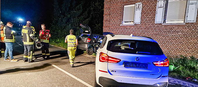 Zu einem tragischen Unfall kam es am Donnerstag Abend auf der Landesstraße zwischen Allendorf/Lumda und Londorf. Ein 35-jähriger Mann aus Staufenberg fuhr gegen 19.40 Uhr mit seinem VW Fox aus Richtung Londorf in Richtung Allendorf. Aus bisher noch nicht geklärten Gründen geriet er auf den Grünstreifen neben der Fahrbahn, kam ins Schleudern und prallte dann auf der Gegenfahrbahn mit einem entgegenkommenden BMW zusammen, bevor er dann noch mit eine Mauer kollidierte. Bei dem Zusammenstoß wurde der Mann so schwer verletzt, dass er noch an der Unfallstelle trotz Wiederbelebungsmaßnahmen verstarb. Die beiden Insassen des BMW, ein 60-jähriger Mann und seine 45-jährige Ehefrau aus Allendorf erlitten nur leichte Verletzungen. Sie wurden vorsorglich in ein Krankenhaus gebracht. Ein Sachverständiger hatte an der Unfallstelle seine Arbeit aufgenommen. Er soll den genauen Unfallhergang rekonstruieren. Die Landesstraße blieb wegen der Unfallaufnahme und den Bergungs- und Aufräumarbeiten mehrere Stunden voll gesperrt. Der Gesamtschaden beläuft sich auf rund 40.000 Euro. +++