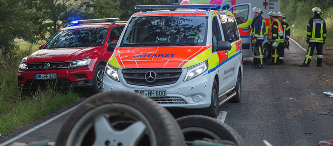 Ein schwerer Verkehrsunfall mit tödlichem Ausgang ereignete sich am Mittwochabend im Vogelsbergkreis. Auf der Landstraße zwischen Pfordt und Schlitz kam kurz nach 20:00 Uhr ein Mercedes Cabrio in einer Linkskurve von der Straße ab, rutschte in den Straßengraben und überschlug sich hierbei. Das Dach des Cabrios wurde dabei massiv eingedrückt. Einer der beiden Insassen, ein 25-jähriger Mann, wurde aus dem Fahrzeug geschleudert und verstarb. Der 30-jährige Fahrer kam mit schweren Verletzungen in ein Krankenhaus. Angehörige der Unfallopfer kamen an die Einsatzstelle und mussten von einem hinzugerufenen Notfallseelsorger betreut werden. An der Unfallstelle kam auch ein Gutachter zum Einsatz, der den genauen Unfallhergang analysieren soll. +++