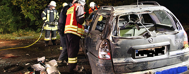Herbstein. Am Montag fuhr gegen 20.00 Uhr ein 37-jähriger Pkw-Führer aus Herbstein die Landstraße von Schlechtenwegen kommend Richtung Stockhausen. Ausgangs einer Rechtskurve geriet das Fahrzeug zunächst auf die Bankette, kam ins Schleudern und überschlug sich mehrfach. Das Fahrzeug blieb anschließend auf dem Dach liegen. Der Fahrer und alleinige Insasse wurde eingeklemmt und musste von der Feuerwehr aus dem Wrack geborgen werden. Er verstarb an der Unfallstelle. Die Ermittlungen zur genauen Unfallursache wurden aufgenommen. Die Staatsanwaltschaft Gießen ist eingeschaltet. Es entstand ein Gesamtschaden von ca. 5000 Euro. +++