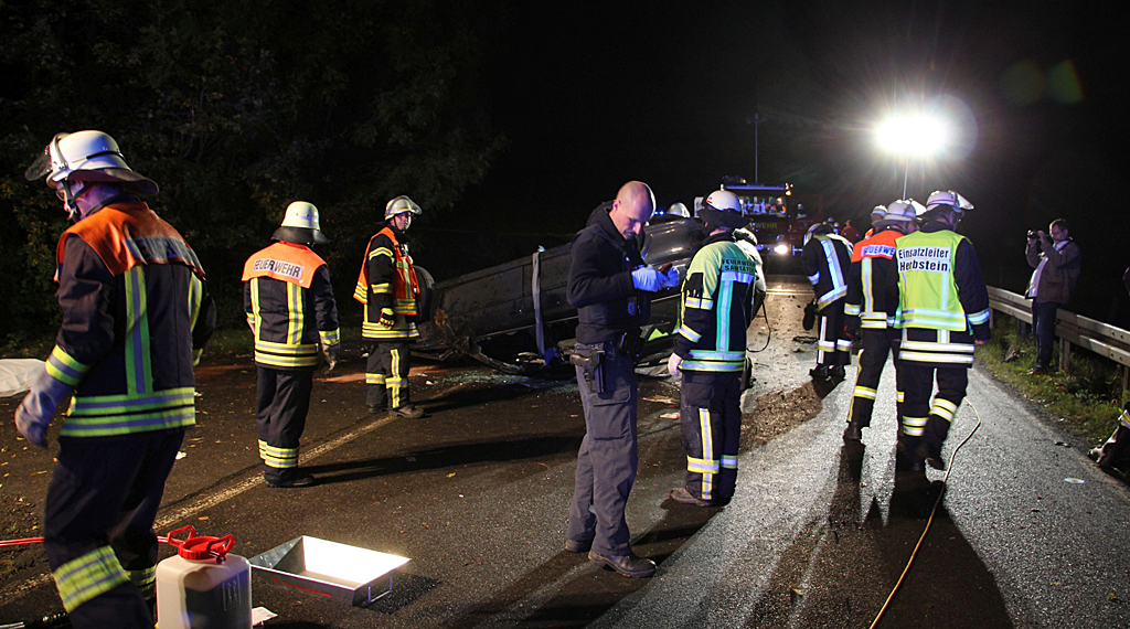 Herbstein. Am Montag fuhr gegen 20.00 Uhr ein 37-jähriger Pkw-Führer aus Herbstein die Landstraße von Schlechtenwegen kommend Richtung Stockhausen. Ausgangs einer Rechtskurve geriet das Fahrzeug zunächst auf die Bankette, kam ins Schleudern und überschlug sich mehrfach. Das Fahrzeug blieb anschließend auf dem Dach liegen. Der Fahrer und alleinige Insasse wurde eingeklemmt und musste von der Feuerwehr aus dem Wrack geborgen werden. Er verstarb an der Unfallstelle. Die Ermittlungen zur genauen Unfallursache wurden aufgenommen. Die Staatsanwaltschaft Gießen ist eingeschaltet. Es entstand ein Gesamtschaden von ca. 5000 Euro. +++