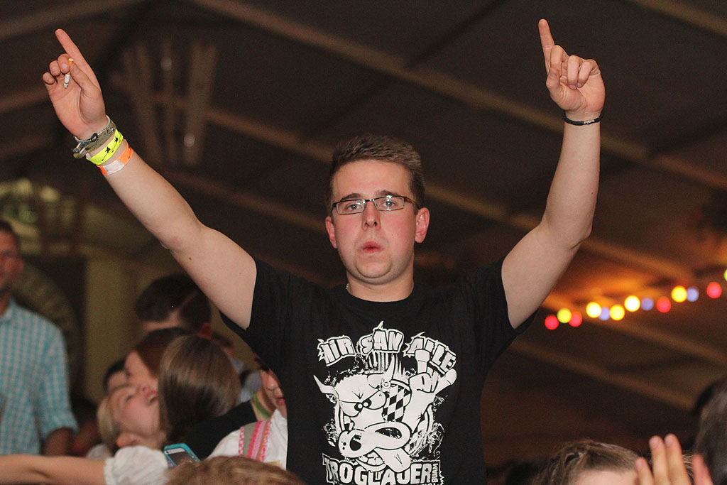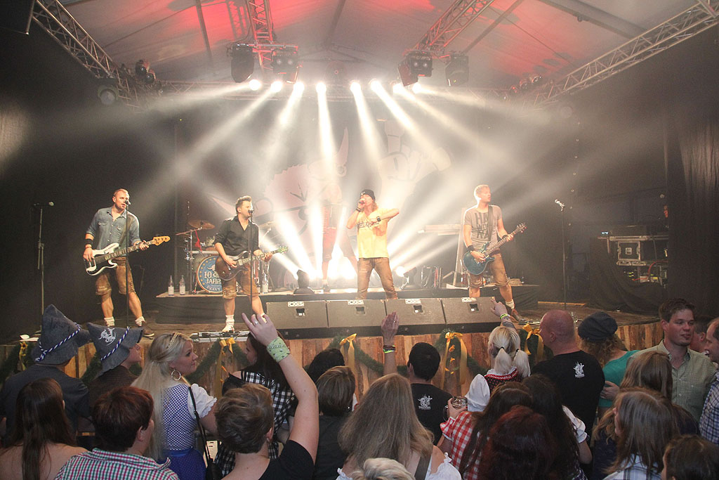 Müs. Das Festzelt in Müs platzte am Freitagabend wieder aus allen Nähten: Denn auch am zweiten Tag der Oktoberfestkirmes herrschte erneut beste Stimmung. Die Troglauer Buam brachten das Festzelt in Wallung und sorgten bei den 2500 Gästen für Riesenstimmung. Eine kleine Umfrage bei den Gästen ergab volle Zufriedenheit sehr zur Freude von Mario Gärtner und seinem Team. Es gab Viele Gäste die eine Anfahrt von 300 km in Kauf genommen haben nur um nach Müs zu kommen. Bereits am Donnerstag hatte in Müs Ausnahmezustand geherrscht als Marilena Kirchner und die Dorfrocker auf der Bühne standen. Ein Highlight war, das die 3000 Kirmes-Besucher den „Dorfkind“-Song der Dorfrocker sangen und die Band aus Unterfranken filmte das Publikum. Ein kurzes Video davon ist auf der Dorfrocker-Fanpage zu sehen. Zum Abschluss am heutigen Samstagabend wird auf der Wiesnparty „Ois Easy“ für jede Menge Gaudi sorgen. +++ fuldainfo | s.weber