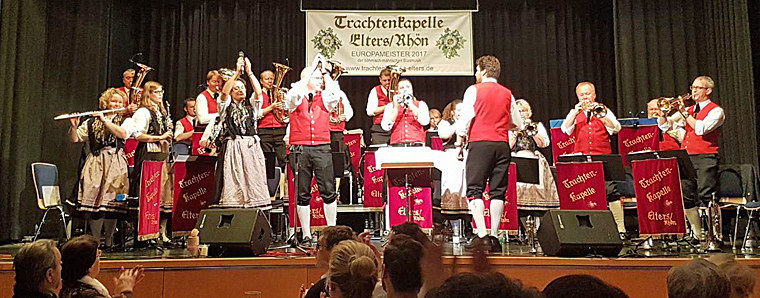 Die Kapelle, die in der Profistufe bei der EM angetreten ist, brachte das Publikum mit Titeln wie „Ein Herz für Blasmusik“, „Im Rosengarten von Sanssouci“, der „Bodensee-Polka“ und vielen weiteren Titeln in die richtige böhmische Stimmung. Nach der Pause spielte der frischgebackene Europameister aus Elters unter Leitung von Markus Arnold. Schon beim Eröffnungsmarsch „Mens Sana In Corpore Sano“ konnte man das Gefühl der Kapelle für Egerländer Musik spüren. Mit der „Polka ins Glück“ und dem Walzer „Musikantenliebe“, die auf der neuesten CD der Elterser zu hören sind, hatte Markus Arnold zwei Titel aufgelegt, die das Publikum ins Schwärmen brachte.