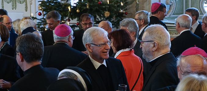 Die Entwicklung in Gesellschaft und Kirche stellen die Kirche vor große Herausforderungen, so etwa die Thematik der sexuellen Gewalt durch kirchliche Verantwortungsträger und der Umgang mit diesem Thema in Kirche und Gesellschaft, was an Grenzen führe und einen „immer wieder neu in menschliche Abgründe schauen“ lasse. Es gehe um Transparenz, Aufarbeitung und unabhängige Begleitung von Opfern und Betroffenen sowie angemessene Anerkennungszahlungen und nachhaltige Veränderung von Haltung und Kultur. Sodann werde auch der Weg ins digitale Zeitalter bei der Kirche zu Veränderungen in Abläufen, Prozessen und Kommunikation führen. Prälat Steinert ging auf das Beispiel von Bless U-2, des ersten segnenden Roboters der Welt, ein. Immerhin bringe diese Idee den Segen neu ins Gespräch und mache seine hohe Wertschätzung auch in der heutigen Gesellschaft bewusst. „Wo immer Gottesdienste angeboten werden – wie etwa beim Kinder- oder Familiensegen am Fest der Hl. Familie, bei Paaren anlässlich von Ehejubiläen oder am Valentinstag, wo Besucher einen persönlichen Segen erfahren können, sind die Schlangen lang. Eine Hand auf meinem Kopf, ein Gebet in meinem persönlichen Anliegen, mein Name, ausgesprochen vor Gott – das zeigt mir: ER meint mich.“ Wenn man auf den Segen Gottes vertraue, dann sei es „vielleicht wirklich egal, ob wir ihn in einem Buch lesen, ob ich ihn spreche oder ob Sie ihn bei Bless U-2 wählen“. Gottes Sorge um uns trage uns ins neue Jahr durch alle Stunden hindurch.