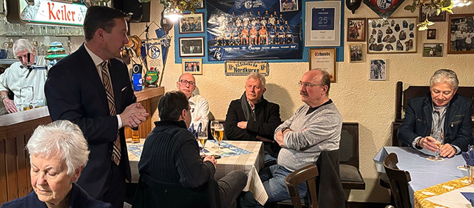 Neuroth sprach über die politische Lage im Land. Die Aufnahme von einer Billion Euro für diverse Projekte werde die Steuerzahler und künftige Generationen hart treffen. Nach dem Essen saßen einige noch zusammen und redeten über Neuigkeiten in Schlüchtern. +++