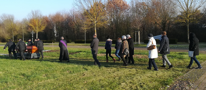 In Dezember-Kälte haben sich heute am Tag des Ehrenamtes wieder einmal engagierte Menschen aus dem Caritas-Projekt „Trauergeleit“ aufgemacht, um die im Caritas-Altenpflegeheim St. Josef verstorbene Bewohnerin Eleonore M. auf ihrem letzten Weg zu begleiten.