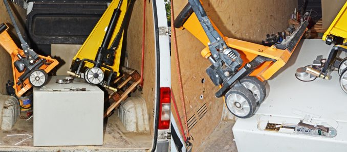 Am Samstag (20.9.) war es schließlich soweit. Das Trio fuhr in den späten Abendstunden mit dem ausgerüsteten Transporter nach Motten und brach in die Firma ein. Dank der guten Vorbereitung gelang es ihnen nun die Tresore, mit mehreren tausend Euro Bargeld sowie den Fahrzeugpapieren und anderen Unterlagen der Firma, aus den Räumlichkeiten zu transportieren und mithilfe der beiden Hubwagen in ihr Fahrzeug einzuladen. Dass ihnen die Polizei zwischenzeitlich auf die Schliche gekommen war, bemerkten die Einbrecher im Augenblick ihrer Festnahme durch ein mobiles Einsatzkommando der Polizei aus Kassel.