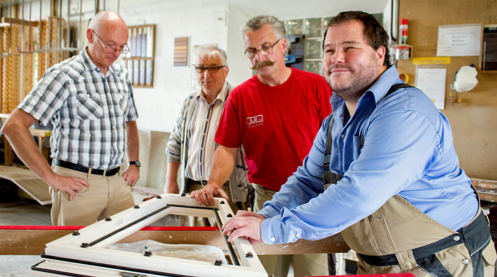 Blind von Geburt an meistert der junge Mann sein Leben und hat in der Vergangenheit als Telefonist gearbeitet. Doch der Wunsch nach einer praktischen Arbeit war groß: Einmal in einen Betrieb hineinschnuppern, richtig mit anpacken und sich körperlich „auspowern“. Dass dieser Wunsch in die Tat umgesetzt werden konnte, dazu haben das Team von Fulda Futur im Schulterschluss mit der Schreinerei G. Matzunsky GmbH & Co. KG beigetragen. „Wir probieren es einfach aus“, lautete das einhellige Credo von Hermann und Martin Matzunsky. Und auf der anderen Seite war sich Projektleiter Joachim Penz sicher, dass Daniel ordentlich mit anpacken und sich in das Team integrieren wird. Holz schmirgeln, Gummidichtungen in Fenster einziehen, Schleifpapier zum Einsatz bringen – vielfältige Arbeiten aus dem Schreinerhandwerk konnte der Petersberger kennenlernen. Immer an seiner Seite der persönliche Betreuer Timm Klemm: „Es hat nicht immer alles geklappt, aber das Engagement ist groß und der Wille hundertprozentig vorhanden.“ Die beiden Geschäftsführer sind voll des Lobes und auch der Praktikant zieht ein positives Resümee: „Zuerst einmal musste ich mich in der Werkstatt orientieren, das ist nicht einfach und manchmal ist auch die Geräuschkulisse sehr groß. Da ich mich ja auf mein Gehör verlassen muss, ging manchmal die Orientierung verloren.“ Doch alles in allem bleibt als Fazit: „Wenn auch anstrengend, hat mich diese Arbeit ausgefüllt.“