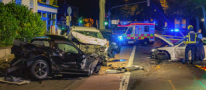 In der Nacht zum Samstag kam es gegen 2.25 Uhr in der Frankfurter Straße in Fulda zu einem schweren Verkehrsunfall. Ein BMW, der stadtauswärts unterwegs war, prallte nach Angaben der Polizei mit überhöhter Geschwindigkeit zunächst auf eine Mittelinsel, geriet ins Schleudern und kollidierte in Höhe der Weserstraße mit mehreren am Fahrbahnrand abgestellten Fahrzeugen. Insgesamt wurden fünf geparkte Autos beschädigt, zwei davon so stark, dass sie als Totalschaden gelten.