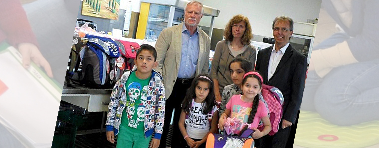 Zum Auftakt der Aktion ließen es sich die Sponsoren Inge Lingenberg, Chefin der Firma Leder-Meid, und Jürgen H. Stroscher, Geschäftsführer des Fuldaer IT-Systemhauses, nicht nehmen, die ersten Ranzen-Sets persönlich an die Tafel-Kinder und ihre Eltern zu übergeben. Mit ihnen freute sich auch Heinz Steege, der erste Vorsitzende der Fuldaer Tafel, über die sichtliche Begeisterung der Kinder und bedankte sich mit herzlichen Worten für die erneute großzügige Spende. +++ fuldainfo