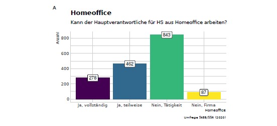 Von der Gruppe der Eltern nahmen 2119 an der Umfrage teil, untergliedert in 281 Väter, dem gegenüber 1788 Mütter, sowie 50 Sonstige (z.B. Grosseltern). Die meisten Eltern, 1069, haben ein Kind auf Fuldaer Schulen, 860 zwei Kinder, 170 drei Kinder, 19 vier Kinder und ein Elternpaar hat 1 fünf Kinder gleichzeitig an Fuldas Schulen. Die Verteilung der Schulform entspricht den üblichen Erwartungen, ausgehend von Beteiligungen an Elternarbeit, meist besucht ist die Grundschule, gefolgt vom Gymnasium und der Realschule. Die Mehrzahl, 1816, lebt mit Partner im Haushalt, nur 230 Alleinerziehende haben die Umfrage beantwortet. Beim überwiegenden Teil besteht zu Hause der Zugang zu digitalen Medien. Von den Teilnehmern sind 1709 berufstätig und nur ein geringer Anteil davon kann im Homeoffice arbeiten. So besteht bei 843 aufgrund der Tätigkeit gar nicht die Möglichkeit, bei 462 ist es nur teilweise im Wechsel mit Präsenz möglich, 278 können vollständig im Homeoffice arbeiten und bei 87 Eltern bietet der Arbeitgeber diese Möglichkeit gar nicht an. Hauptverantwortlich für das Homeschooling ist zumeist auch der/die Befragte selbst, 1347 übernehmen diese Tätigkeit, bei 323 sind beide ungefähr gleich viel im Einsatz während bei 116 hauptsächlich der andere Elternteil zuständig ist. Einen Anspruch auf Notbetreuung haben nur 541 Eltern, die überwiegende Mehrheit von 1040hat keinen Anspruch auf diese, obgleich zum Zeitpunkt der Umfrage der Anspruch auf Notbetreuung bereits auf weitere Elterngruppen erweitert gewesen war.
