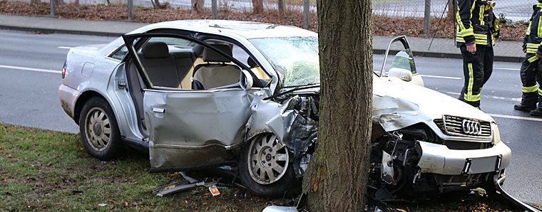 Pkw prallte gegen Baum. Bilder: Henrik Schmitt