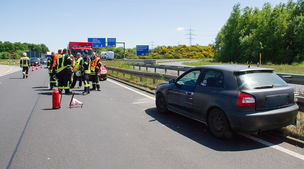 Auf der A66 ereignete ich am Donnerstagmittag auf der A66 zwischen Fulda-Süd und Neuhof-Nord. Ein Auto geriet in die Leitplanke, die vier Insassen wurden leicht verletzt. Der Audi kam von der B27 und wollte auf die A66 auffahren, war aber wohl zu schnell unterwegs. Vier Insassen – darunter der Fahrer, ein weiterer Mann, eine Frau und ein fünfjähriges Kind – wurden direkt medizinisch versorgt und trugen leichte Verletzungen davon. Ob eine der Frauen schwanger war, konnte die Polizei nicht bestätigen. Die Feuerwehr Eichenzell sicherte die Unfallstelle ab, auch Rettungsdienst und Polizei waren vor Ort. Die Polizei schätzt den Sachschaden auf rund 5000 Euro. +++
