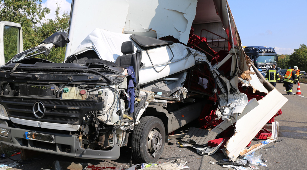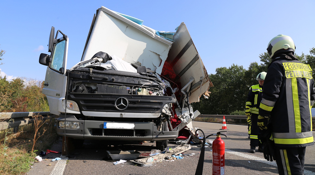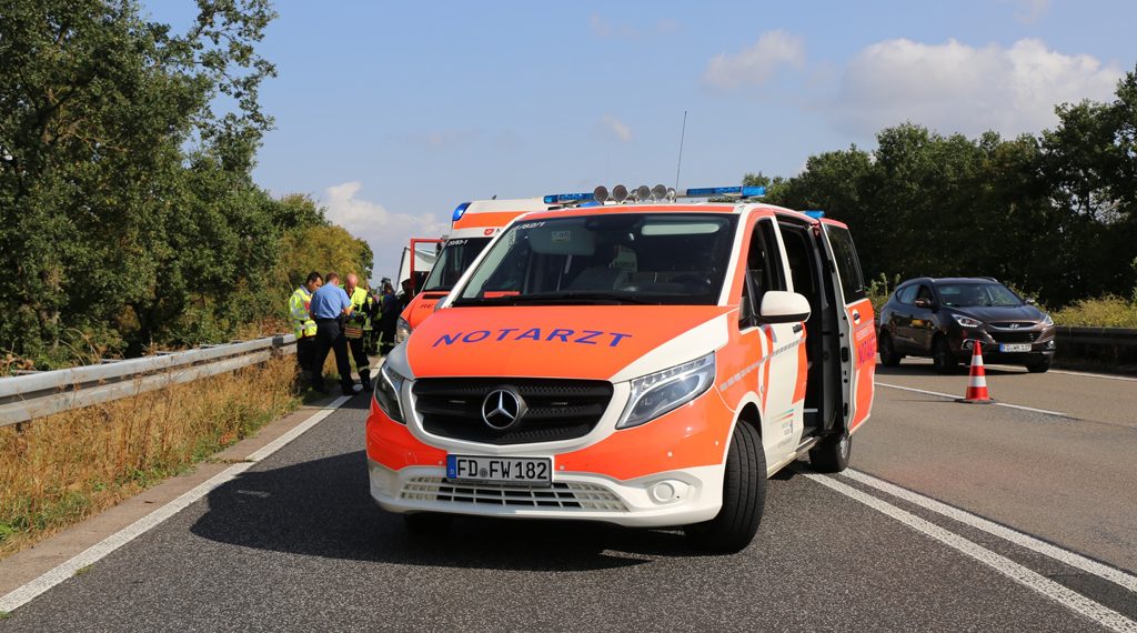 Am heutigen Dienstag, kam es gegen 09:35 Uhr auf der A7, Kassel in Richtung Würzburg zwischen der Anschlussstelle Fulda-Mitte und dem Autobahndreieck Fulda zu einem Verkehrsunfall. Wegen einer Baustelle hatte sich ein kurzer Rückstau gebildet. Ein 50-jähriger aus Mecklenburg-Vorpommern stand mit seinem LKW am Stauende. Der 38-jährige Fahrer eines Kleintransporters bemerkte den Stau zu spät und fuhr auf den LKW auf. Der Fahrer wurde eingeklemmt und dabei schwer verletzt. Er musste durch die Feuerwehr aus seinem Fahrzeug herausgeschnitten werden. Sein 80-jähriger Beifahrer wurde ebenfalls verletzt, konnte jedoch selbst das Unfallfahrzeug verlassen. Beide wurden in ein Krankenhaus eingeliefert. Die Polizei schätzt den Sachschaden auf ca. 25.000 Euro. Zeitweise war die Autobahn wegen Bergungsarbeiten voll gesperrt. +++ Fotos: Henrik Schmitt