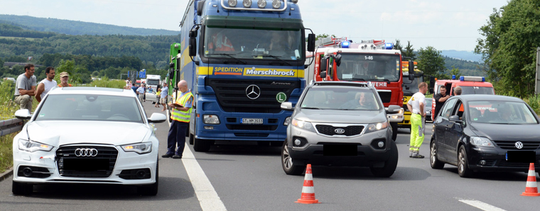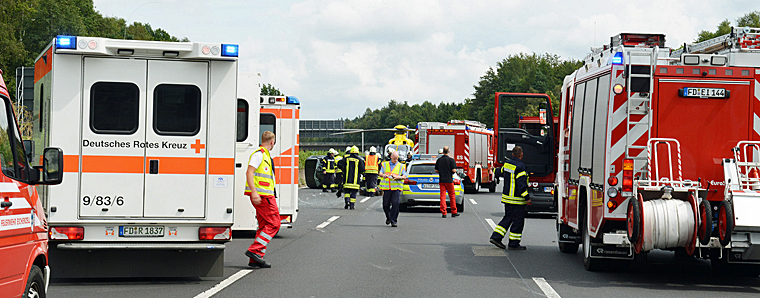 Fulda. Ein 71 Jahre alter Mann aus Aschaffenburg fuhr am heutigen Mittwoch mit seinem Suzuki gegen 11:35 Uhr auf der A7 in Richtung Kassel. Kurz nach dem Dreieck Fulda wechselte er den Fahrstreifen, um zu überholen. Dabei übersah er nach aktuellem Ermittlungsstand einen von hinten kommenden weißen Audi. Dessen 39 Jahre alter Fahrer konnte trotz sofortiger Reaktion einen Zusammenstoß nicht vermeiden. Dadurch fiel der Suzuki auf die Seite und blieb auf der linken Fahrspur liegen. Sein mitgeführter leerer Anhänger stand ebenfalls auf der linken Spur. Die alarmierte Feuerwehr half der 67-jährigen Beifahrerin des Suzukifahrers aus dem verunfallten Fahrzeug, da sie sich nicht selbst aus dem umgekippten Wagen befreien konnte. Die Autobahn musste zwischen 12:00 Uhr und 12:40 Uhr wegen der Landung des Rettungshubschraubers und der Bergung der Fahrzeuge voll gesperrt werden. Bei dem Unfall wurden die beiden Suzuki-Insassen verletzt und mit Rettungswagen in umliegende Krankenhäuser gebracht. Der Audifahrer blieb nach derzeitigem Ermittlungsstand unverletzt. Insgesamt entstand ein Sachschaden von etwa 17.000 Euro. +++ fuldainfo | e.freund