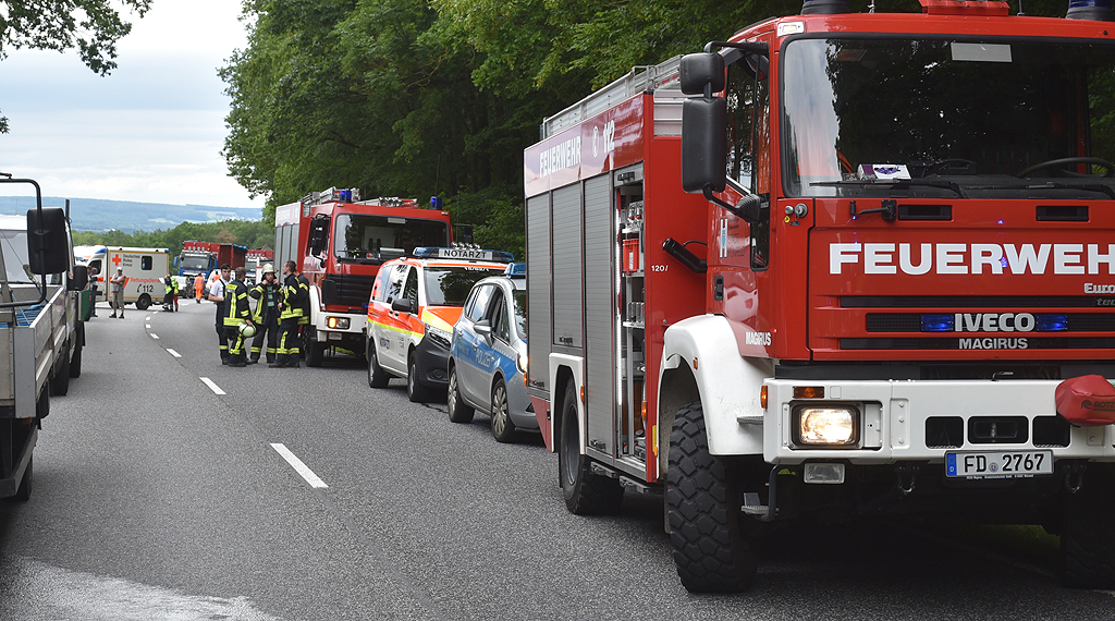 Der 49-jährige Fahrer eines entgegenkommenden Pkw VW Passat versuchte noch, nach rechts auszuweichen, konnte aber einen Frontalzusammenstoß nicht mehr verhindern. Die 62-jährige Fahrerin des Mercedes wurde durch den Zusammenstoß im Fahrzeug eingeklemmt und musste durch die Feuerwehr befreit werden. Sie wurde nach Erstversorgung mit einem Rettungshubschrauber in eine Klinik nach Kassel geflogen. Für einen 31-jährigen Mitfahrer im Fond des Pkw kam jedoch jede Hilfe zu spät, er verstarb noch an der Unfallstelle. Eine 49-jährige Insassin, die ebenfalls hinten gesessen hatte, wurde schwerverletzt ins Klinikum Fulda verbracht, wo sie kurze Zeit später ihren schweren Verletzungen erlag.