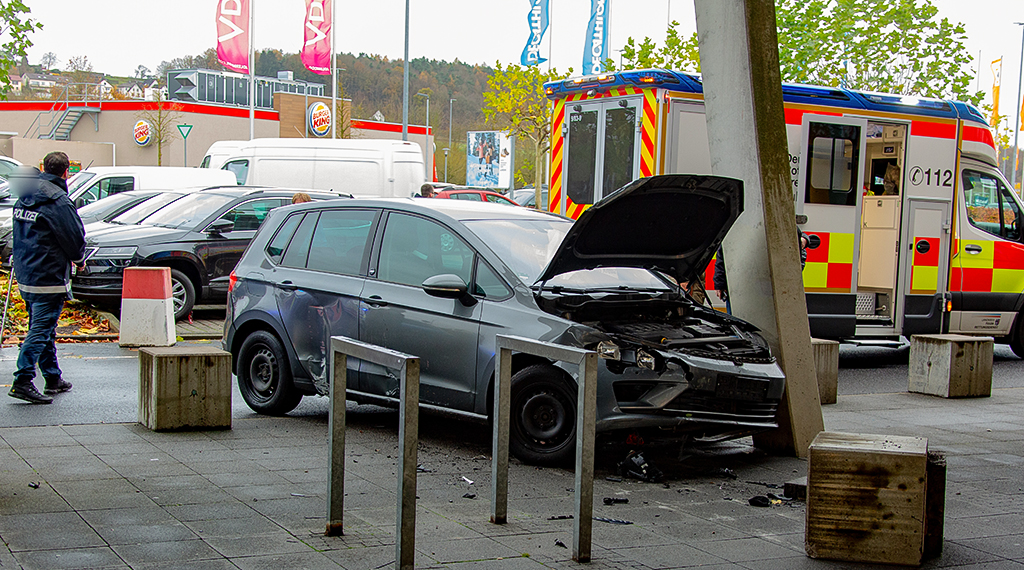 Die Polizei hat die Ermittlungen zur Unfallursache aufgenommen. Es entstand erheblicher Sachschaden an den beteiligten Fahrzeugen und der Parkplatzabsperrung. +++