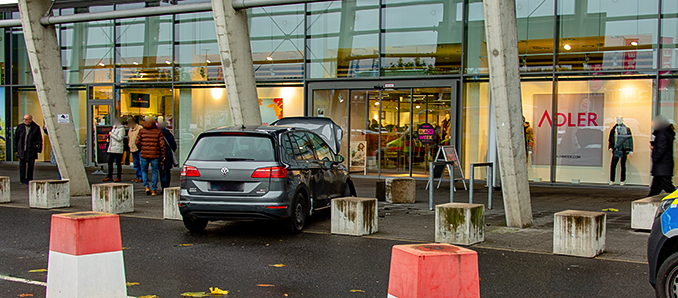 Gegen 11.50 Uhr touchierte die Frau beim Rangieren mit ihrem Fahrzeug zunächst vier parkende Autos. Anschließend kollidierte sie mit einem der Betonpoller, die den Fußgängerbereich von der Fahrbahn trennen. Durch die Wucht des Aufpralls wurde der Poller aus seiner Verankerung gerissen und mehrere Meter in den Fußgängerbereich geschleudert.