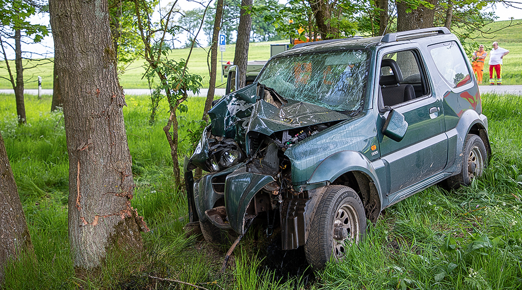 Am Montagnachmittag ereignete sich auf der B275 zwischen Nösberts-Weidmoos und Vaitshain ein schwerer Verkehrsunfall, bei dem ein 36-Jähriger aus der Gemeinde Grebenhain schwer verletzt wurde. Der Fahrer kam mit seinem Suzuki Jimny von Nösberts-Weidmoos und wollte Richtung Grebenhain. Ein Reh kam aus einem Getreidefeld und sprang auf die B275. Der 36-Jährige wich diesem Reh aus und kam von der Fahrbahn ab auf die Bankette. Infolgedessen fuhr der Pkw einen Leitpfosten um, schoss anschließend über eine nasse Wiese und prallte frontal an einen Baum. Der schwer verletzte 36-Jährige kam nach der ärztlichen Erstversorgung mit dem Rettungshubschrauber Christoph Gießen in ein Krankenhaus. Es entstand ein Sachschaden von rund 6.000 Euro. Der Pkw wurde von der Polizei sichergestellt. Den genauen Unfallhergang muss nun ein Sachverständiger klären. Vor Ort war der Rettungsdienst, ein Notarzt, der Rettungshubschrauber Christoph Gießen und eine Streifenbesatzung der Polizeistation Lauterbach. +++ Mehr Blaulichtberichte auf unserer Blaulichtseite - osthessen112.
