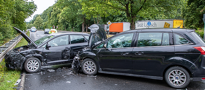 Auf der B27 kam es am Donnerstag gegen 16.05 Uhr zu einem Unfall in Höhe des Burghauner Rewe-Marktes. Zwei Pkw waren beteiligt, es gab drei leichtverletzte Personen. Insgesamt fünf Personen in zwei Fahrzeugen waren bei dem Unfall verwickelt, wie der Lagedienst der Polizei bestätigt. Ein Seat wollte vom Rewe-Parkplatz auf die Bundesstraße auffahren, ein Ford war auf der B27 aus Richtung Burghaun unterwegs. Es kam zum heftigen Zusammenprall. Drei Personen sind dabei leicht verletzt worden, mussten aber ersten Erkenntnissen zufolge nicht in ein Krankenhaus. Die Straße ist aktuell dicht, es staut sich zurück bis in Höhe der Abfahrt Hünfeld-Nord. Die Feuerwehren und die aufnehmende Polizei haben die Unfallstelle bereits wieder verlassen. Das Abschlepp-Fahrzeug muss sich durch den Stau kämpfen, wie die Polizei mitteilt, kommt es wegen der nicht freigehaltenen Rettungsgasse zu Problemen. +++ Mehr Blaulichtberichte auf unserer Blaulichtseite - osthessen112.