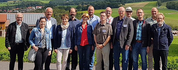 Die Besonderheiten aller 5 Ortsteile wurden kurz vorgestellt, entweder verbal oder in einer Ortsbegehung mit Erläuterung. Anhand einer Broschüre, eines Wegweisers, der von Ortsvorsteher Peter Detig in Kooperation mit den Ortsbeiräten eigens für die Teilnehmer der Kommission erstellt wurde, war ein aussagekräftiger Leitfaden gegeben, der alle wichtigen Inhalte zeigte. Bei Sonnenschein fand der Abschluss mit leckerem Rhöner-Charme-Imbiss im Biergarten des Berggasthofes „zur Ebersburg“ (Inh. Reinhold u. Evi Günther) statt. Von dort lag die Großgemeinde im Land der offenen Fernen den Betrachtern zu Füßen. Es war eine tolle und runde Sache, die Ortsvorsteher und der Bürgermeister hatten am Ende ein gutes Gefühl. 13 Gemeinden aus den Landkreisen Fulda und Main-Kinzig haben 2017 am Regionalentscheid teilgenommen.