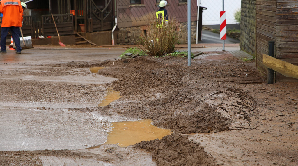 Sichenhausen. Ein Unwetter wütete am Samstagnachmittag im Schottener Ortsteil Sichenhausen und löste eine kleine Schlammlawine aus. Mindestens acht Gebäude wurde von Schlamm und Wasser geflutet, darunter das Dorfgemeinschaftshaus. Eine Hausbewohnerin wurde durch die Lawine leicht verletzt, sie wurde von einem Rettungsteam versorgt. Mehrere Einsatzabteilungen der Freiwilligen Feuerwehr der Stadt Schotten waren mit rund 50 Kräften im Einsatz, sie beseitigten über Tauchpumpen und Nasssauger die gröbsten Verunreinigungen in den Häusern. Auf den Straßen waren die Einwohner des 200-Seelen-Dorfes mit Schaufeln und Besen zur Beseitigung des Schlamms aktiv, hier kamen auch Traktoren mit Frontlader und Bagger zum Einsatz. Während den Räumarbeiten war die Ortsdurchfahrt für den Verkehr voll gesperrt. Der entstandene Sachschaden beläuft sich nach ersten Schätzungen im sechsstelligen Bereich. Ein Haus soll nach ersten Angaben unbewohnbar sein. +++ fuldainfo | pw