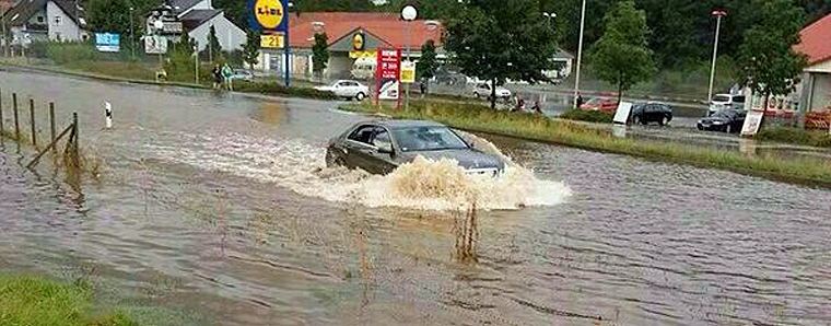 Hilders/ Arnshain. In Hilders standen durch ein Unwetter mehrere Keller bis etwa 150 cm unter Wasser. 163 Feuerwehrkräfte aus Hilders, Tann, Gersfeld, Hofbieber, Künzell und Wissels hatten ab etwa 19:30 Uhr alle Hände voll zutun. Einige Straßen standen ebenfalls bis zu 30 Zentimeter unter Wasser. Die Polizei sprach von einer Schlammlawine, die durchs Dorf floss. Auch im Kirtorfer Stadtteil Arnshain wurden Straßen durch ein Unwetter überschwemmt. Der Starkregen mit bis zu 20 Litern Niederschlag pro Quadratmeter setzte in kurzer Zeit mehrere Keller der Kasseler Straße unter Wasser. Die Feuerwehr rückte mit Tauchpumpen und Nasssaugern zur Wasserwehr an. Etwa dreißig Feuerwehrleute entfernten das unerwünschte Nass aus den Gebäuden. Wie Stadtbrandinspektor Heino Becker informierte, waren dazu die Einsatzabteilungen aus Arnshain, Kirtorf und Lehrbach eingesetzt. „Wir mussten nicht unerhebliche Wassermengen abpumpen“, so Becker vor Ort. Es wird nachberichtet. +++ fuldainfo