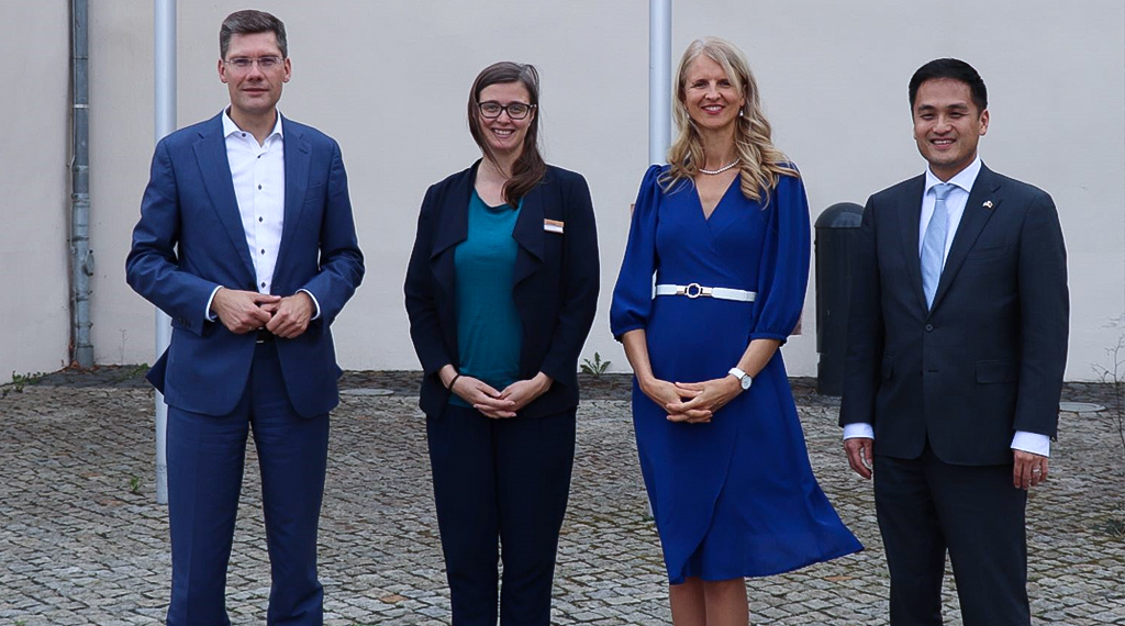 Ken Toko (rechts) zu Gast im Schloss Geisa mit (von links) dem CDU-Bundestagsabgeordneten und Stiftungsratsmitglied Christian Hirte, der Leiterin des Gästehauses der Point-Alpha-Akademie Tina Maskow und Bürgermeisterin Manuela Henkel. Alle Fotos: privat