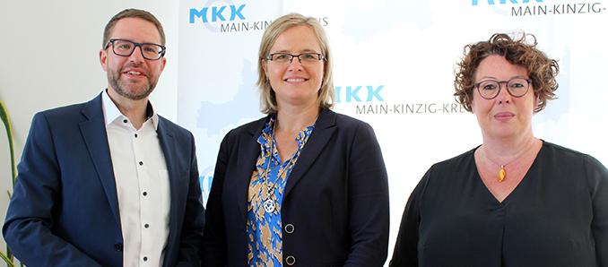 Landrat Thorsten Stolz und Erste Kreisbeigeordnete Susanne Simmler (rechts) wünschen der Leitenden Kriminaldirektorin Ute Jacobs, die seit Mai die Leitung der Polizeidirektion Main-Kinzig in Hanau übernommen hat, einen guten Start und freuen sich auf eine gute und vertrauensvolle Zusammenarbeit.