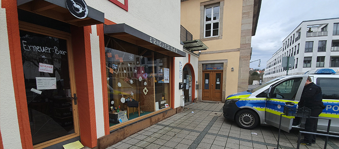Am Sonntagmorgen meldete ein Passant die zerstörte Eingangstür der "ErneuerBar", dem RepairCafé von Fulda in der Lindenstraße 2. Die herbeigeeilte Polizeistreife konnte am Tatort erste Spuren aufnehmen und Sicherungsmaßnahmen einleiten. Auf Grund des Weihnachts-/Neujahresurlaub der L14zwo, waren die Verantwortlichen zwar nicht einfach zu erreichen - nach 30 Minuten konnte dann aber auch das Personal vom RepairCafe die Polizei vor Ort unterstützen.