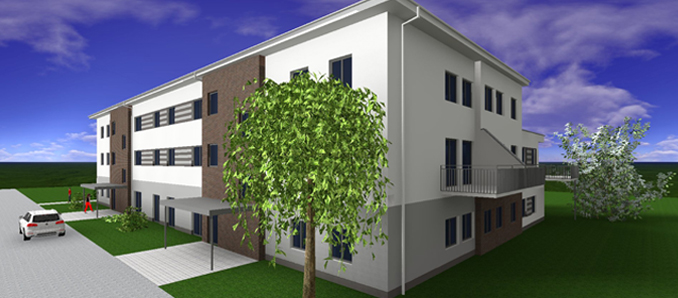 Im Kaufvertrag für den ersten BA sind Gebäude für den Wohnungsbau und das Gesundheitswesen festgelegt, im 2. BA für den Wohnungsbau. Zurzeit ist noch offen, welche Infrastruktur für das Gesundheitswesen dort einziehen wird. Es sind erste Vorgespräche mit dem Geschäftsführer und den Gesellschaftern der Landarzt MVZ-Rhön GmbH sowie mit einem Physiotherapeuten geführt worden, weitere Interessenten können noch berücksichtigt werden. Weiterhin ist noch nicht festgelegt, ob ganz oder teilweise das Förderprogramm „sozialer Wohnungsbau“ in Anspruch genommen wird (Mittel sind reserviert) oder es eine ungebundene freie Vermietung geben wird. Auf dem gesamten Grundstück liegt ein Bebauungsplan-Plan für ein Mischgebiet, der Gebäude für den Wohnungsbau und nicht störendes Gewerbe zulässt. Wegen der geplanten Architektur des Baukörpers muss mit der 1. Änderung des Bebauungsplans Steinwiesen der Bebauungsplan angepasst werden. Die Gemeindevertretung fasste dafür den Aufstellungsbeschluss. Das Unternehmen Steinwiesen II – Immobilien-GmbH plant auf diesem Teil des Grundstücks Gebäude für das Wohnen mit einer Ausführung zeitversetzt nach ca. 2 Jahren. Die nachfolgend abgebildeten Grafiken zeigen Planentwürfe des Architekten Edgar Heller für den Baukörper der Steinwiesen I – Immobilien-GmbH. +++ mh