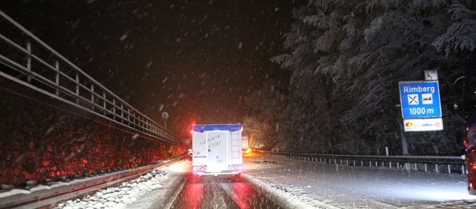 Ungezählte weitere Lastwagen standen in beiden Richtungen der Autobahn quer, über mehrere Stunden rollte der Verkehr keinen Zentimeter. Auf der Steigungsstrecke am Rimberg in Richtung Kassel blockierten Lastwagen die Fahrbahn über alle drei Streifen. Der Winterdienst musste sich mühselig durch den Stau kämpfen, ebenso die Rettungskräfte. Zeitweise lief ein Mitarbeiter der Autobahnmeister vor dem ersten Räumfahrzeuge her und forderte die Lastwagenfahrer auf, eine Rettungsgasse zu bilden. Eine Schneeschicht von bis zu zehn Zentimetern lag auf dem Asphalt und erforderte sogar den Einsatz von Schneeketten für Rettungswagen. Die Bergungsarbeiten sind zurzeit in der Anlaufphase. In beide Richtung der Autobahn herrschen Staus von über zehn Kilometern Länge. +++ fuldainfo | pw