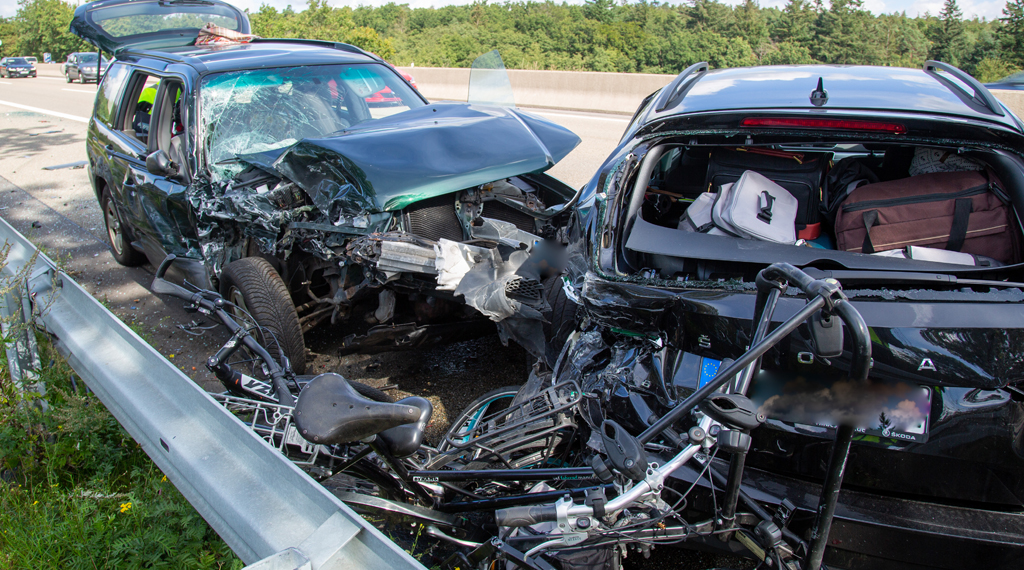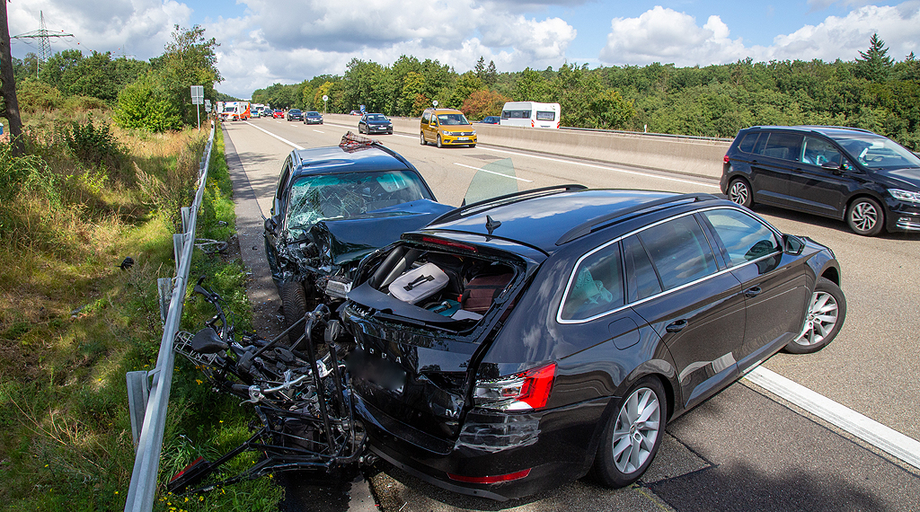 Ein schwerer Unfall hat sich am Sonntagvormittag gegen 10.25 Uhr auf der A7 zwischen Hünfeld/Schlitz und Fulda-Nord ereignet. Ein 86-Jähriger hatte ein Stauende übersehen und sechs Autos beschädigt. Bei dem Unfall wurden sechs Personen leicht verletzt. Der Unfall hat sich etwa 100 Meter vor der Abfahrt Fulda-Nord ereignet. Der Verkehr in Richtung Süden war aufgrund der Brückenbaustelle bei Götzenhof ins Stocken geraten. Der 86-Jährige aus Bielefeld, der mit seiner 82-jährigen Frau unterwegs war, hatte das zu spät erkannt und beim Versuch, in die Rettungsgasse auszuweichen, fünf Autos seitlich gerammt bevor er schließlich in das Heck eines Skodas krachte. Insgesamt wurden sechs Personen leicht verletzt und in umliegende Krankenhäuser gebracht. Es entstand Sachschaden in einer Gesamthöhe von rund 49.000 Euro. Vor Ort waren fünf Rettungswagen, ein Notarzt und eine Streife der Polizeiautobahnstation Petersberg. Die Autobahn musste für etwa eine Stunde voll gesperrt werden, danach wurde der Verkehr einspurig an der Unfallstelle vorbei geführt. Der Verkehr staute sich auf bis zu fünf Kilometer Länge zurück. +++