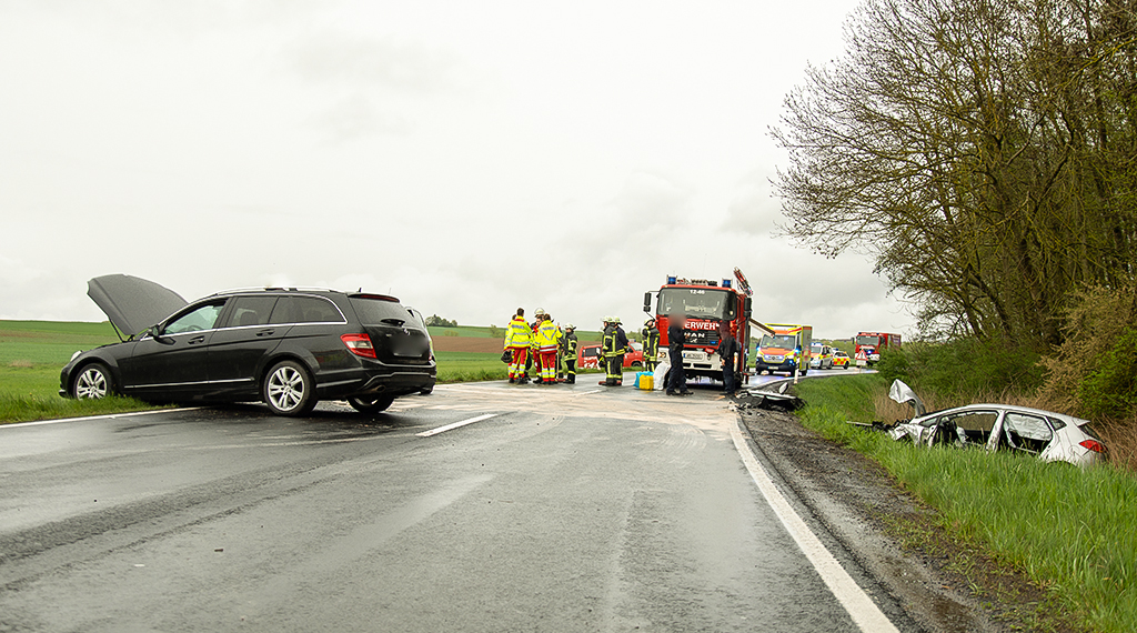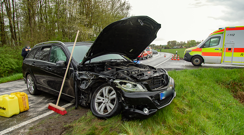 Am Donnerstagnachmittag kam es auf der Landesstraße 3141 zwischen Bernshausen und Schlitz zu einem schweren Verkehrsunfall. Gegen 17:12 Uhr kollidierten in einer Kurve zwei Fahrzeuge frontal miteinander, nachdem ein 26-jähriger Mercedes-Fahrer aus dem Vogelsbergkreis auf regennasser Fahrbahn ins Schleudern geraten war und auf die Gegenfahrbahn geriet. Dort stieß er mit dem entgegenkommenden Auto einer Fahrerin zusammen.
