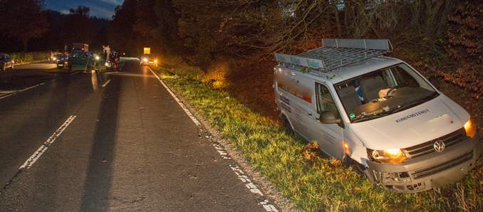Gegen 18 Uhr kam es auf der Landstraße zwischen Hainzell und Kleinlüder zu einem Unfall bei dem zwei Personen verletzt wurden. Nach ersten Erkenntnissen der Polizei wollte eine ältere Dame aus der Gemeinde Hosenfeld mit ihrem Opel Agila vom Parkplatz Friedhof Hainzell in Richtung Hainzell auf die Landstraße fahren, hierbei übersah sie einen VW Transporter, der in Richtung Kleinlüder unterwegs war. Der Fahrer versuchte, noch auszuweichen, konnte den Zusammenstoß aber nicht verhindern und landete mit seinem Fahrzeug im Graben. Beide Fahrzeugführer wurden mit dem Rettungswagen ins Klinikum Fulda gebracht. An beiden Autos entstand Totalschaden. Über die Verletzungen konnte die Polizei noch keine Angaben machen. +++