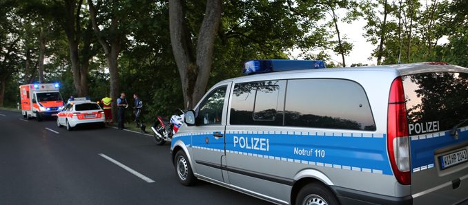 Fulda. Am Freitag fuhr gegen 17.15 Uhr ein 23-jähriger Kradfahrer aus einem Fuldaer Stadtteil die L3174 von Hofbieber kommend in Richtung Schwarzbach. Im Bereich einer langgezogenen Linkskurve, in Höhe vom Weihershof, verbremste sich der Aprilla-Fahrer infolge nicht angepasster Geschwindigigkeit und verlor die Kontrolle über sein Krad. Anschließend streifte er einen vorausfahrenden BMW, der gerade nach rechts in Richtung Bieberstein abbiegen wollte, an der rechten Fahrzeugseite. Dadurch kam der Kradfahrer zu Fall und er rutschte über eine Verkehrsinsel. Der Kradfahrer wurde schwer verletzt ins Klinikum Fulda eingeliefert. Die Insassen des BMW blieben unverletzt. An beiden Fahrzeugen entstand ein Gesamtschaden in Höhe von 6000 Euro. +++ fuldainfo