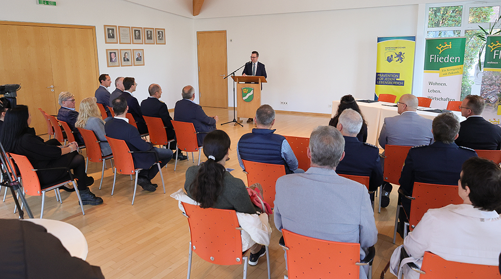 „Heute setzen wir einen bedeutenden Schritt in Richtung einer sicheren Zukunft für Flieden. Mit der Einführung des freiwilligen Polizeidienstes in unserer Gemeinde und der heutigen Unterzeichnung des Kooperationsvertrages bringen wir ein wertvolles Angebot an Sicherheit und Gemeinschaftssinn nach Flieden“, unterstrich Fliedens Bürgermeister Christopher Gärtner bei der Vertragsunterzeichnung im Rathaus. „Unsere Gemeinde ist unsere Heimat, unser Zuhause, der Ort, an dem wir uns wohl und geborgen fühlen.“ Gärtner weiter: „Heimat und Sicherheit sind untrennbar miteinander verbunden, und es ist daher passend, dass der Minister für Inneres auch die Aufgabe des Heimatschutzes übernommen hat. Das unterstreicht, das Sicherheit eben nicht nur eine staatliche, sondern auch eine gemeinschaftliche Aufgabe ist.“
